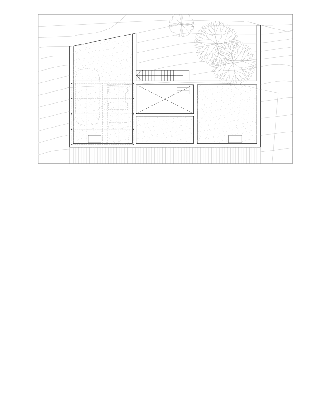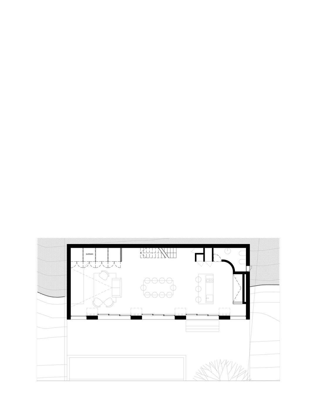 En este estado de cosas, en que nuestro Cliente aceptó y quiso hacer suyas las condiciones del terreno, decidimos adaptarnos a la pendiente y apostar por una arquitectura lo más discreta y reposada posible.